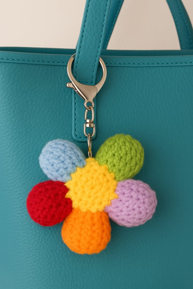 Add a pop of joy to your look with our handmade crochet flower keychain. Featuring vibrant petals and soft textures, it’s the perfect accessory to brighten any bag — stylish, playful, and uniquely Perfectly Flawless.